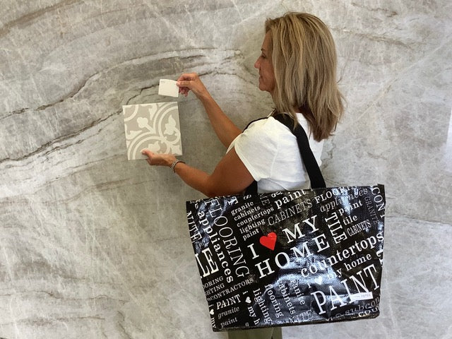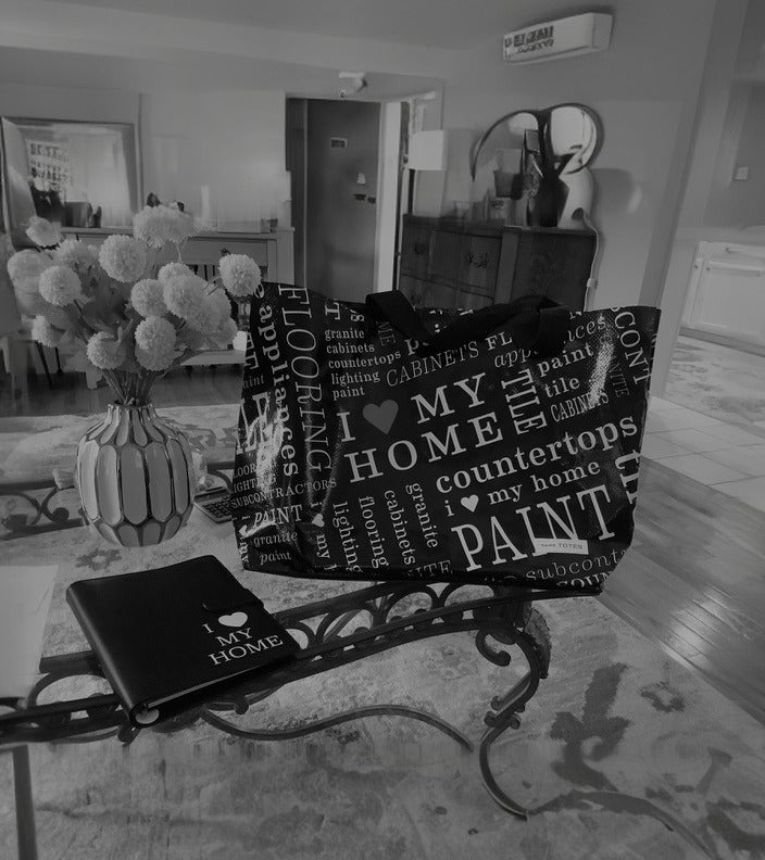 We have been in the residential countertop industry for more than 25 years. Over that time, we have seen (witnessed) hundreds of homeowners struggle with maintaining and organizing their home samples (cabinet doors, tile, paint, etc) as they shop for their favorite Granite and Quartz slabs . These customers need a simple and cute bag to house their samples as well as an organizer to record their selections for future reference. WALAA...we created the original Home Tote and Home Organizer. We sincerely wish you much success in your current or future home endeavor.
